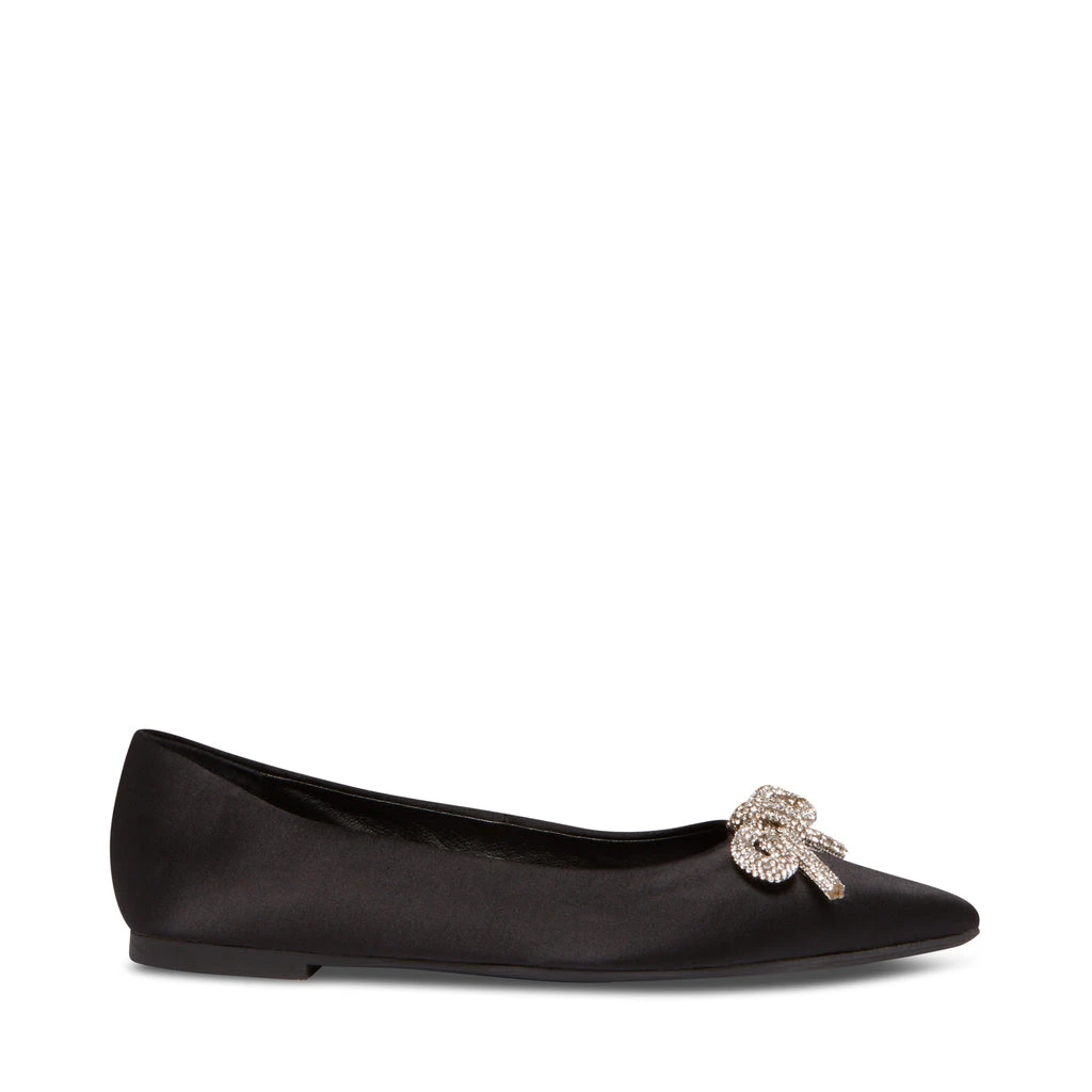 ELINA-R is a classic ballet flat with a satin upper and embellished bow which twinkles every step you take.